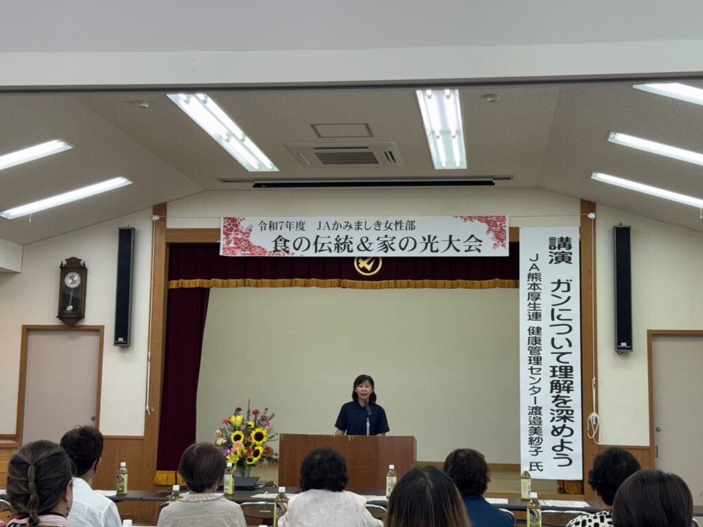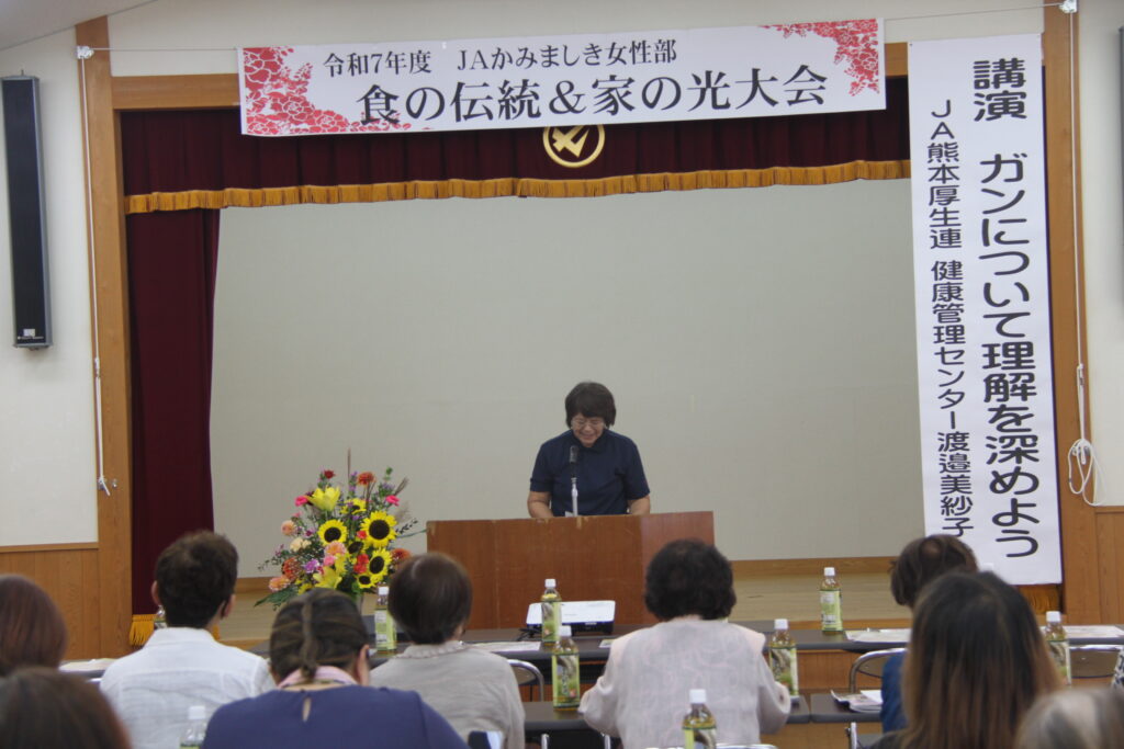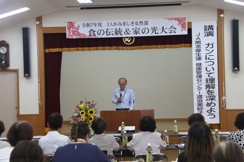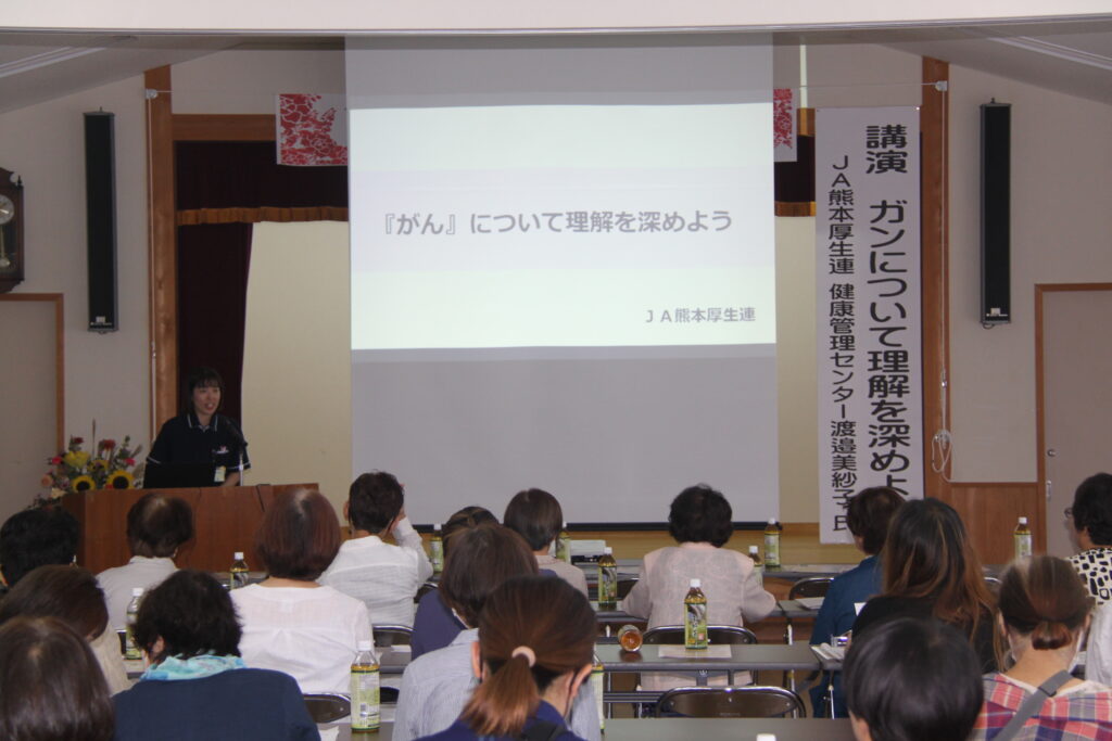 講演では、JA厚生連の渡邉職員による「ガンについて理解を深めよう」が行われ、健康への関心を高める機会となりました。