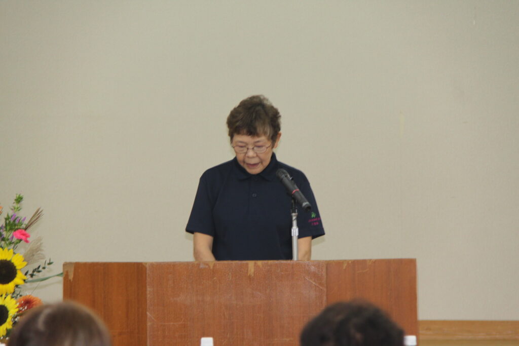 組織活動体験発表では、嘉島支部の藤木陽子さんが、23年間続く花植え活動を紹介。少人数から始まった活動が、環境意識の高まりとともに部員の増加につながったこと、そしてその積み重ねが未来へとつながることを力強く語りました。